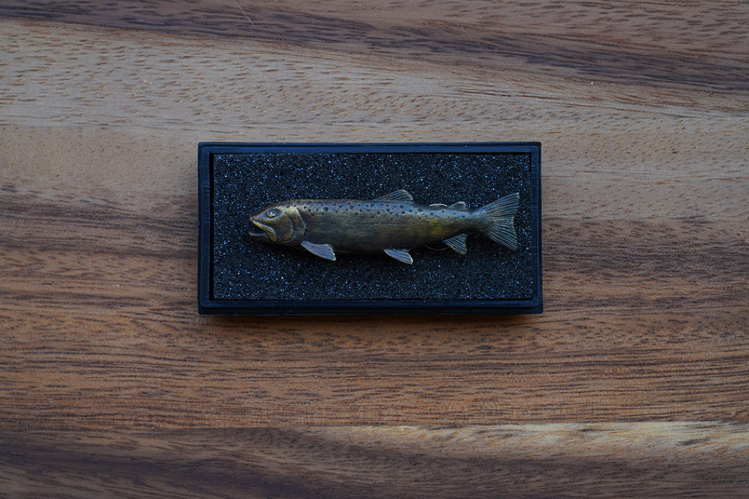 基準値越えの大物を釣られた方はアンティークゴールドのイトウピンバッチを進呈します。