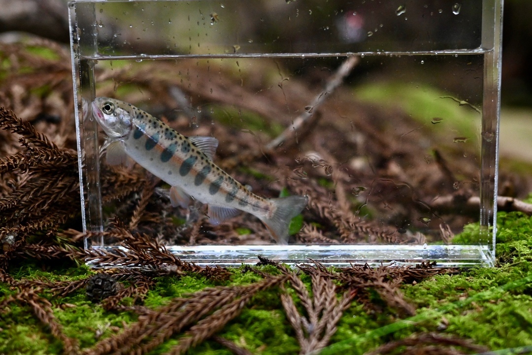 「撮影サイズじゃないやろ!早く川に戻してくれ〜」と言わんばかりの勢いで素早く流れの中に戻っていった。