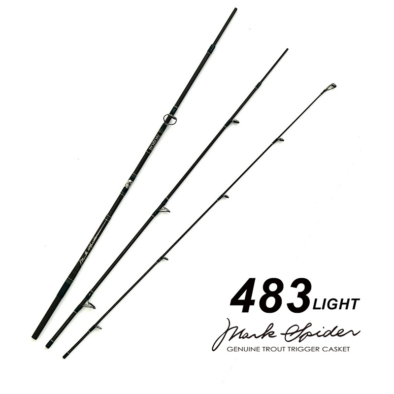 先出のMSB483MLのティップライト版が483Lです。渓流ベイトフィネスでのフリップキャストの有効性は狙ったポイントに入れやすいことです。それがさらに狭い川幅、ブッシュの多い渓流になればティップを自由に触れるスペースがさらに狭くなります。これがこのブランクの開発きっかけです。