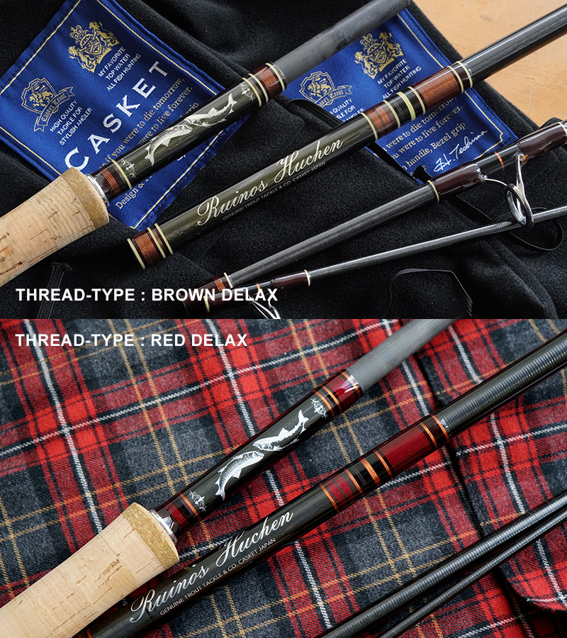 大型トラウトに美しくも強く立ち向かう遠征パックロッドが完成しました。その威力、耐力はまだ見ぬ限界の大型魚を目指しています。日本の職人が一つ一つの継ぎ込みを印籠継ぎ仕上げ。太さが変わらない1ピースロッドのような見た目と、飾り巻きをネーム付近は19色巻きという多色巻きで芸術品のような竿に仕上げました。